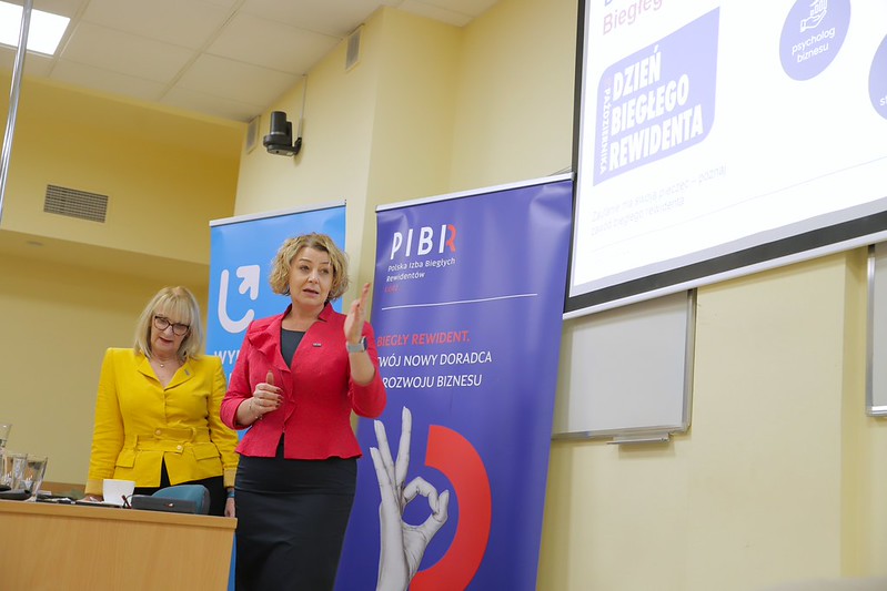 Dziękujemy Pani Agnieszce Kryśkiewicz-Burnos, Zastępcy Prezesa Krajowej Rady Biegłych Rewidentów, Prezes RO PIBR w Łodzi za wykład przybliżający specyfikę tego zawodu i poprowadzenie panelu dyskusyjnego, w którym wzięli udział biegli rewidenci – eksperci zrzeszeni w PIBR.